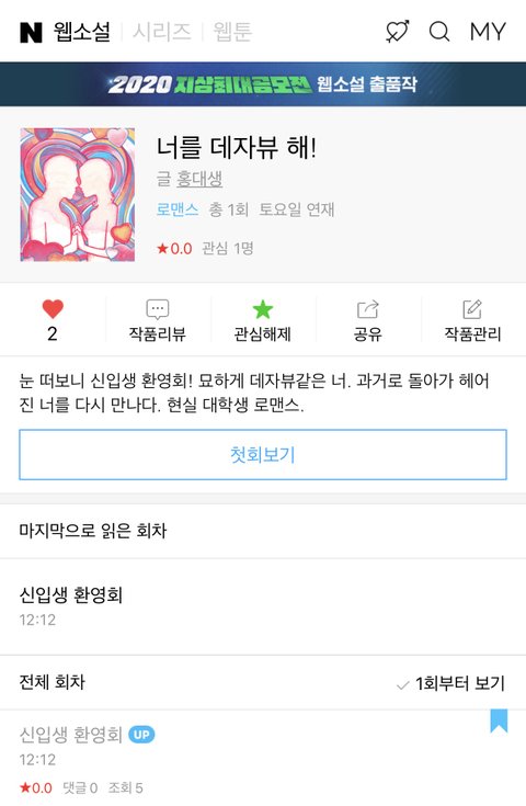 !!!얘도라 나 네이버 웹소설 공모전 출품했어!!!