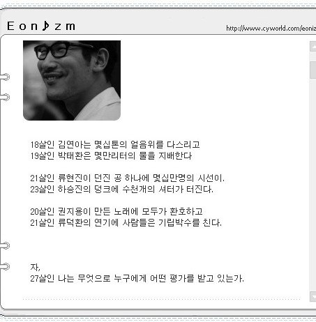 화제가 됐던 미니홈피 글~~ 오빠는 저에게 말근육으로 평가받고 계세요 ㅎㅎㅎ