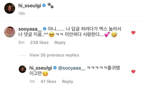 그런데 지수가 실수로 X를 눌러버려서 슬기 댓글이 삭제됨 ㅋㅋㅋㅋㅋ