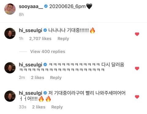 자기 댓글이 지워졌단 얘길 듣자마자 다시 달려가서 댓글 쓴 슬기 ㅋㅋㅋㅋㅋㅋ