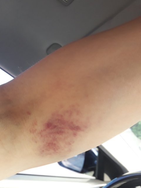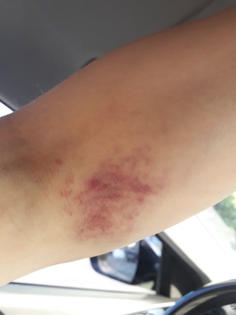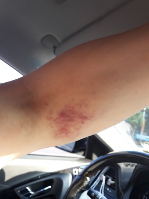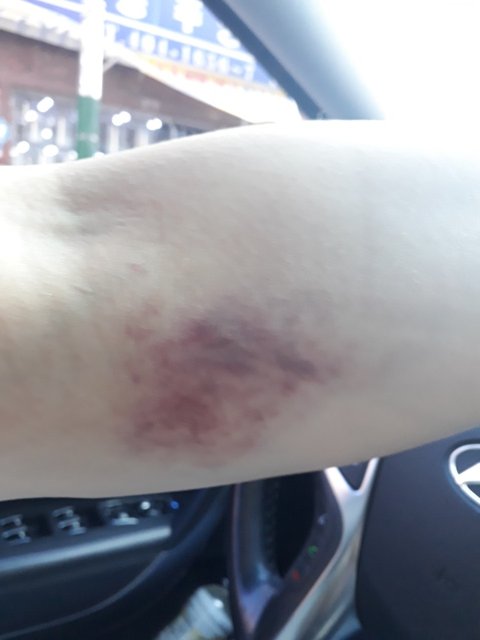 현재는 팔 대부분이 초록색?노란색으로 멍이 들어 있는 상태 입니다.