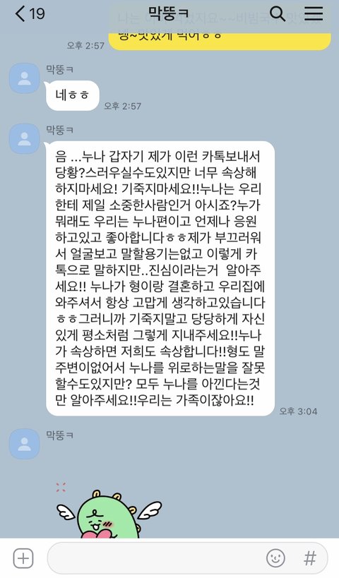 근데 우리 막내 도련님이 이런 톡을 보냈네요