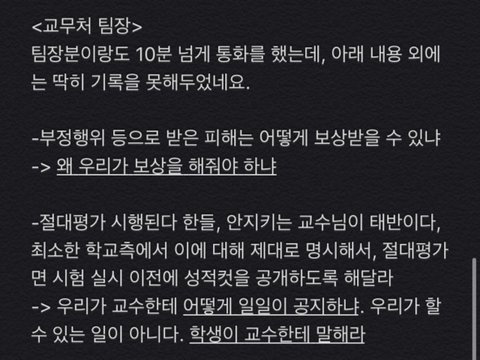 총학과 교무처의 면담록 첨부할게요. 아무런 대응방안도 없이 그저 패논패 제도는 '교육적 견지'에 맞지 않아 불가능하다니..