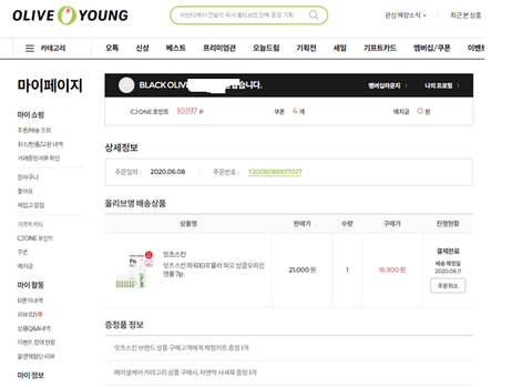 올라인으로 사는데 이번에 올영몰 들갔다가
