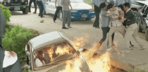 차에 불이 나서 긴박한 상황인데...뭔가 조잡한 CG;;;