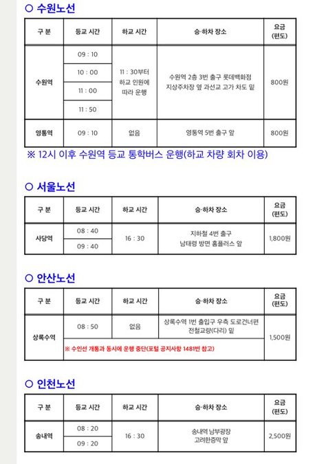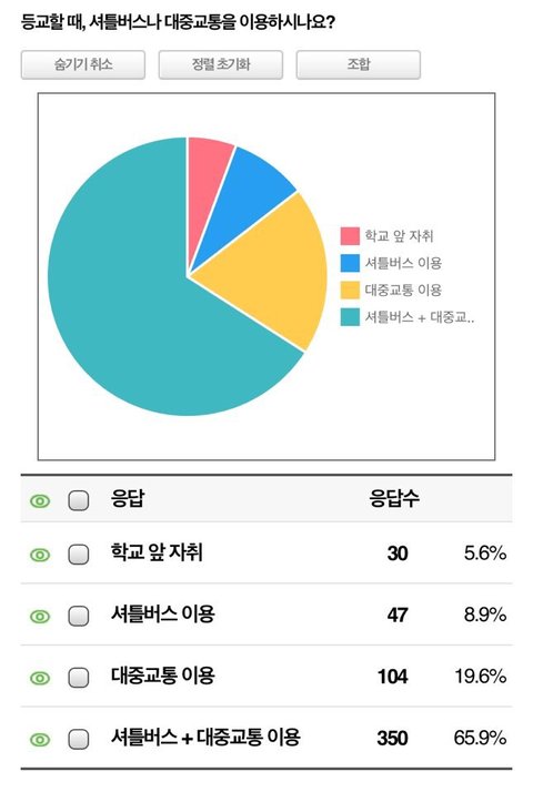 -또한 전에 수원OO대학교 관련되어 올라온 네이트판의 투표결과를 토대로 셔틀버스를 이용하는 학생들과 셔틀과 대중교통을 함께 이용하는 학생의 수는 531명 참여한 투표의 397명의 학생들이 이용한다는 결과가 있었음. 이에 학교에서는 셔틀에 탑승하는 학생들의 수를 20으로 제한한다고 안내하였으나 등교하는 학생 수에 비해 셔틀 배차간격이 너무 길어 그 시간 사이에 등교해야 하는 학생들은 불편함을 겪었음. (택시등교 또는 버스이용)