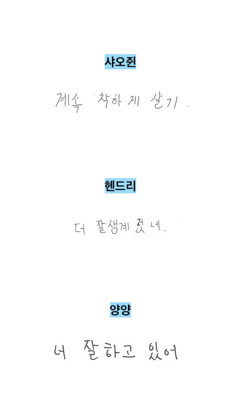3년 후 자신에게 하고 싶은 말 하는데 다들 잘 한다, 잘 지내? 이런 거 쓰는데 관형이 혼자 더 잘생겨졌대ㅋㅋㅋㅋ