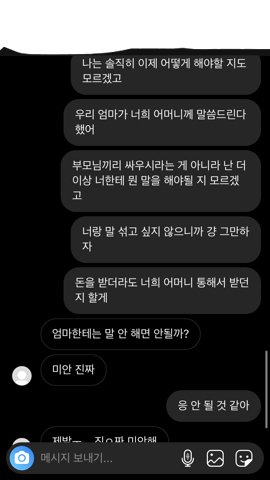 디엠은 어제 밤에 한 거고 진짜 존 나 쌉레게노 아니냐? 울엄마가 회사다니시는데 며칠동안 바쁜 기간이라서 연락 아직 못 드렸고 내일이나 모레쯤 연락 드리기로 함 ㅋㅋ