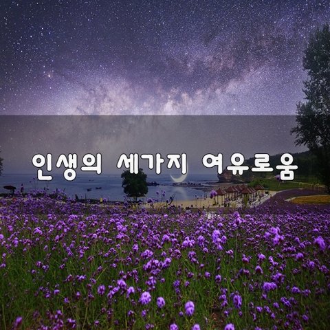 ♥ 인생의 세가지 여유로움 ♥ 사람은 평생을 살면서...하루는 저녁이 여유로워야 하고,일년은 겨울이 여유로워야 하며,일생은 노년이 여유로워야 하는세 가지 여유로움이 있어야 한답니다. 그것을 "3여(三餘)"라고 말한답니다. 농부의 삶을 예로 들면고된 하루 농사일을 끝내고저녁 호롱불 아래 식구들과 도란도란저녁상을 받는 넉넉함이첫 번째 여유로움이고 봄부터 부지런히 밭을 갈고 씨앗을 뿌려풍성한 가을 걷이로 곳간을 채운 뒤눈 내리는 긴 겨울을 보내는 충만함이두 번째 여유로움이며 아들 딸 잘 키워 결혼을 시키고경제적으로 넉넉한 여유로움 속에서부부가 함께 건강하게 지내는노년의 다복함이세 번째 여유로움이라고 합니다. 사람은 누구나 행복하길 원합니다.행복의 기준은 다 다를 수 있습니다. 그러나 비록 행복의 기준은 달라도여유로운 마음이행복의 지름길이라는 것은누구나 다 압니다. 여유를 모르는 사람은배려하는 마음이그만큼 적다고도 합니다.
