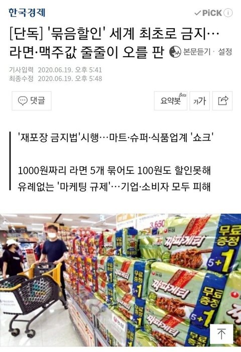 이제 마트 같은데서 하는 묶음 할인을 정부차원에서 금지한데요