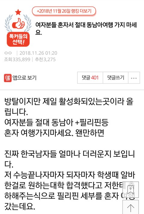 여자분들 절대 혼자로 동남아여행 가지마세요.
