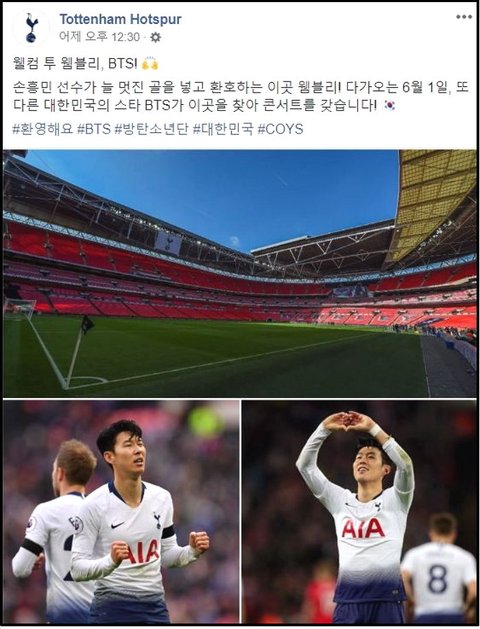 게다가 방탄소녀단이 공연을 하던 웸블리스타디움은 토트넘이 홈구장을 만드는동안 잠시 빌려쓴 토트넘의 임시홈구장이었어!