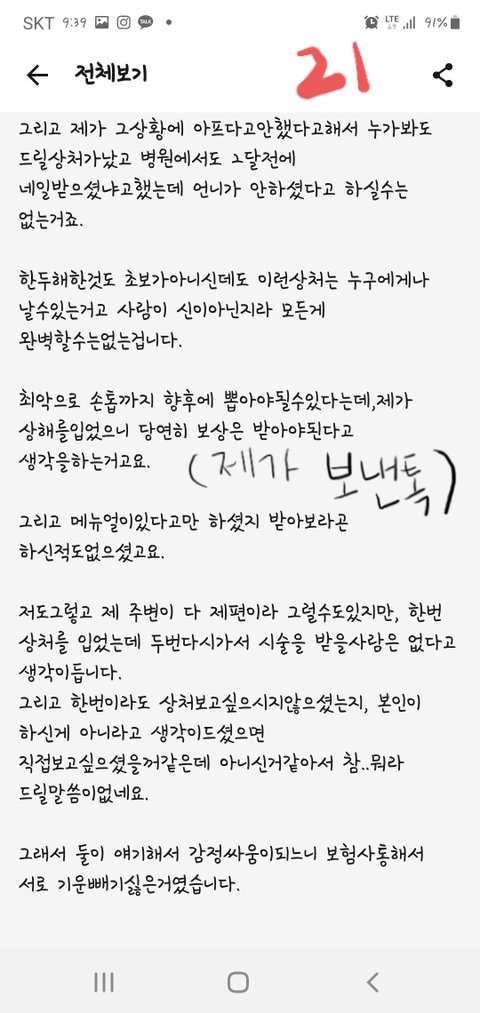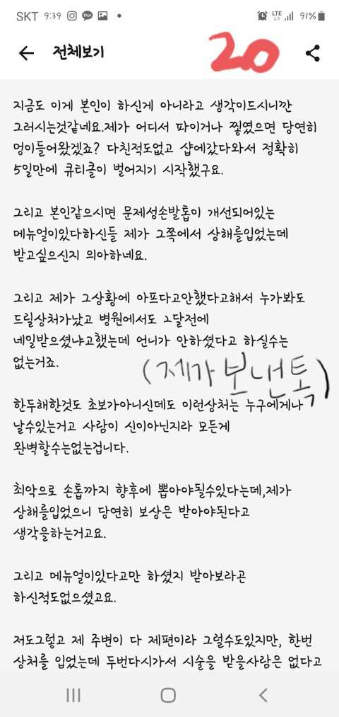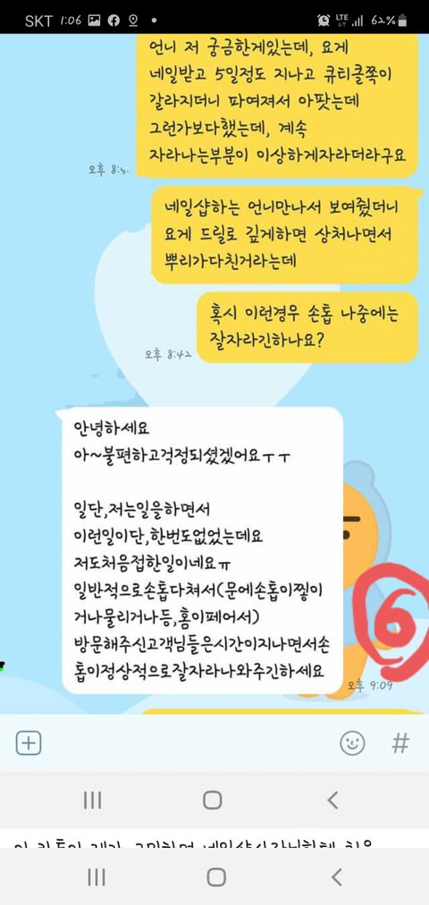 제가 처음부터 보상을 바란건아니고, 샵에서 일어난 일이고 아직 손톱이 자라나와해 후유를 보아야하는 상황이라 답답했습니다.