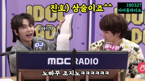 설명: 로투킹 첫방 직전에 출연하는 모든 그룹이 그룹별로 10분씩 브이앱을 함-> 방송에 대해 이야기하는 중 노빠꾸 조진호 왈 "아 근데 저는 솔직히 편집이 좀 걱정되긴 해요^^ 저희는 뭐 잘한 것 같긴 한데 편집이,,, 방송에 어떻게 나올지를 모르겠으니까" 하면서 웃음 ㅋㅋㅋㅋㅋㅋ