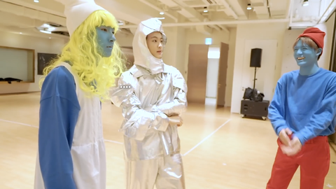 스머프 분장 거울로 확인하고 충격 먹음 ㅆㅂㅋㅋㅋㅋ 어떻게 이럴 수 있녴ㅋㅋㅋㅋㅋ 옆에서 이제노는 형광펜 같다고 하고 아 ㅈㄴ 웃겨 ㅆㅂ