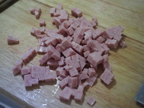 스팸도 반통만 잘게 썰어둡니다.