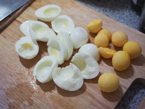 노른자는 잘게 부셔두고