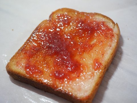 한면에 딸기잼 바르고