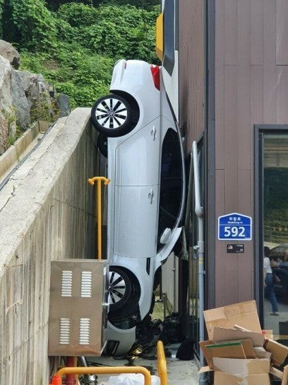 어떻게 차가 저렇게 들어간 거임? ㄹㅇ 진짜 궁금해서