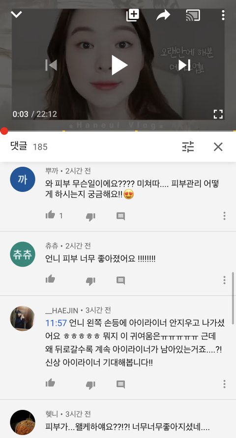 그리고 나서 가장 최근에 올라온 유튜브 영상을 보고 제가 느낌 감정 그대로를 댓글로 적었습니다. "전이랑 달라진거 1도 없는듯. 역시 사람은 안변해" 라고 말이에요.