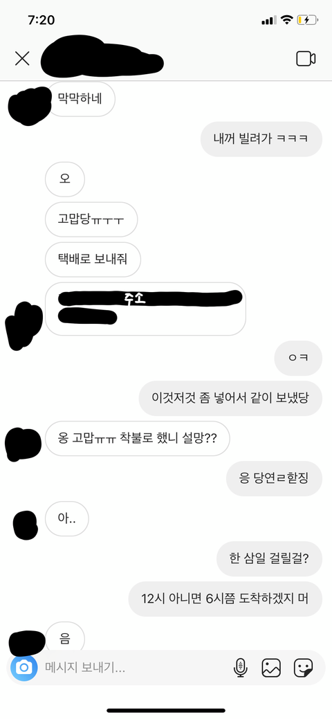 근데 언니가 저보고 아 생각해보니까 택배 올것같은 날 그 시간대에 집에 없을 것 같다고 집에 다 와서야 이야기 하니