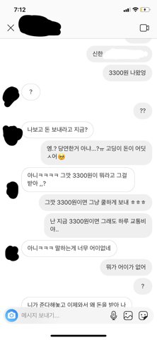 그깟 3300원이면 그냥 쿨하게 보내달라고 나 학생이라 돈도 얼마 없고