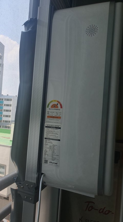 고무날개?패깅인가요 너덜너덜..우글우글 원래그런건가 두리번두리번..?제대로 설치가 안된게 맞더라고요... 설치틀에 끼우게 되어있는데 완전히 다 끼워져 있지 않았더구요 음..창문 반대편은 창문틀과 수평이 잘 맞는데. 문풍지?같은것도 안해놓으셔서 공간이 있더라고욯ㅎㅎㅎ저걸 미리 붙이고 설치를 하는거였음을 알았슴다....ㅎㅎ 설치기사님이 던져주고간 문풍기비슷한걸 가지고 땀삐질삐질 흘려가며 붙임. 공간의 70%는 막은듯하여 작동을 합니다.