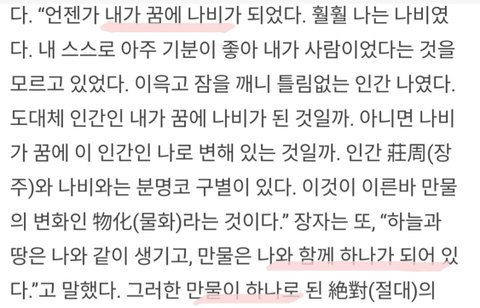 바로 ‘현실의 나’와 ‘꿈 속의 나’ 사이에서 혼란스러워 하다가 결국 둘이 하나다라는 것을 깨닫는 그런 내용이었네요