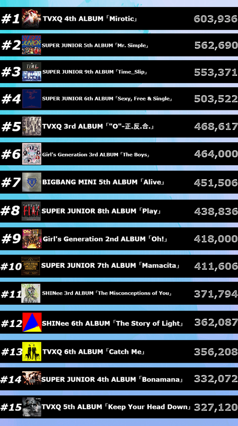 4위 슈퍼주니어 정규 6집 50만 3522장
