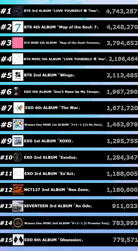 3위 방탄소년단 미니앨범 6집 379만 4652장