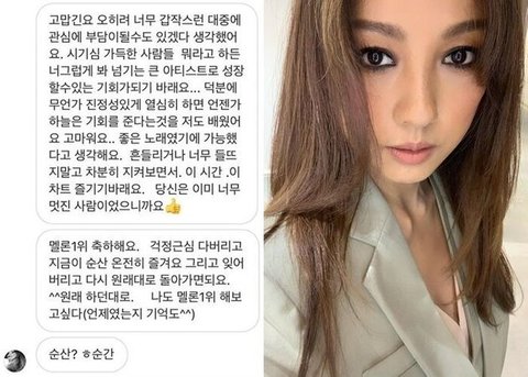 블루가 보낸 고맙다는 디엠에 이효리답장