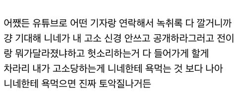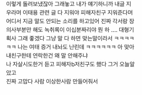 그리고 제발 목숨으로 협박하지 마세요 보는 사람 무서워 죽겠어요 여론이 기운다 싶으면 이런글 올리시는데 벌써 세번째네요 자기 목숨을 제발 소중히 여겨주세요 가스라이팅 하지 마시고요
