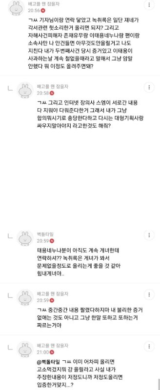 태용이랑 슴은 합의한대로 이행하는데 팬들이 신상털고 찾아오고 이런거 때문에 제보자가 일종의 피해자가 되었고 / 거기서 팬들을 법적으로 고소해야되는데 핀트를 태용이랑 슴으로 잡아버려서 생기는 갈등