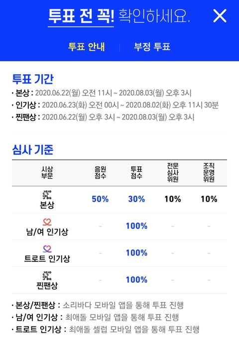 1일 최대 별 100 개 투표 가능---매일매일 투표하기