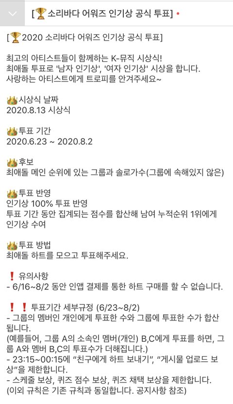 인기상은 최1애돌 앱 깔아서 하트로 투표 ㅇㅇ