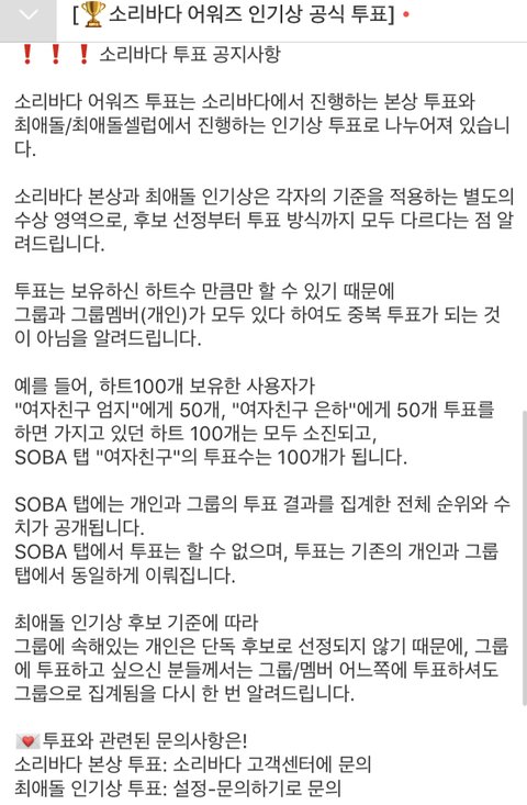 소리바.다 최.애돌 인기상 투표