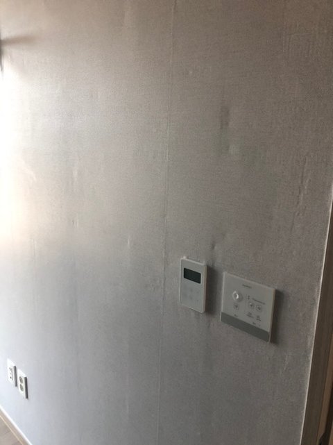 전화를 하니 실크벽지였다가 뜯어냈는데 원래 실크벽지바를때 부직포속지가 발려있어서 그렇다고 다 뜯어내면 시멘트에 바로 바르면 더 울퉁불퉁하고 안좋다고 저렇게 붙여놓은게 고급스럽게 하는거라고 하네요