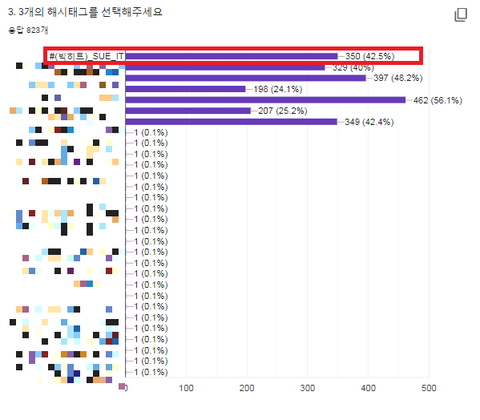 2위 문구는 그룹명이 직접적으로 들어가있어 3위 문구로 진행하게 되었습니다.3위 350표(42.5%)로 #BHIT_SUE_IT 로 정해졌습니다.