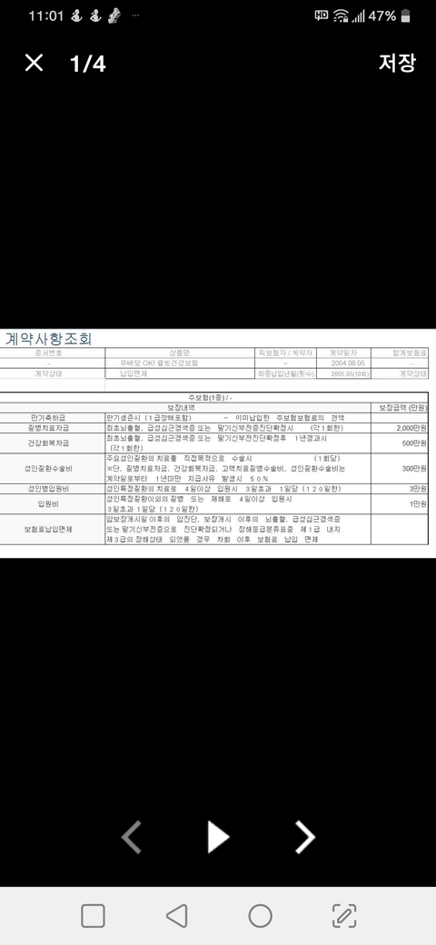 만성신부전 판정으로 진단금(1,000만원)과 건강회복자금(250만원)을 일시로 받았습니다.