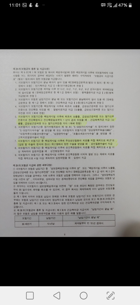 백내장의 경우에는 가입시점에 해당 질병이 아예 없었기 때문에 불가능하다고 하는데, 약관에 보니 '상기 질병이외의 약관에 해당하는 질병이 있는 경우에는 그 질병도 포함하는 것으로 합니다.' 라고 되어있는데 그럼 개정된 기준으로 봐야 하는 게 아닌가 생각이 들거든요. 최근 같은 회사에서 나온 다른 보험에 보니 성인질환분류표에 해당 백내장코드가 명시되어 있어 그럼 개정된 기준으로 봐야 되는 게 아니냐고 따졌는데도 같은 말만 되풀이해서 그럼 부지급명세서를 보내달라고 한 상태입니다.
