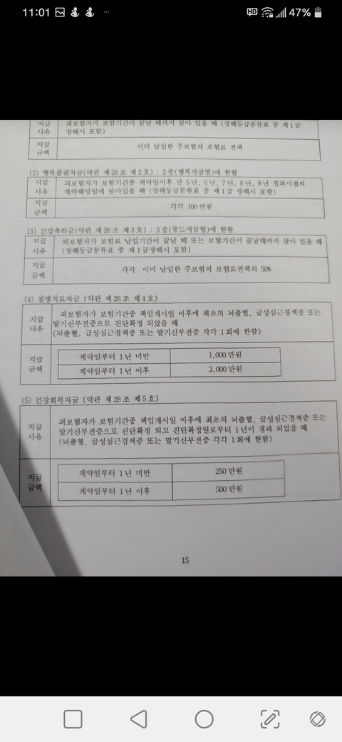 질문2. 건강회복자금은 보험회사에서 말하는 걸 그대로 믿어도 되는 걸까요? 제가 혹시 1년뒤에 받았으면 다 받을 수 있었던 거였는데 미리 지급해서 50%만 받은 건 아닐까요?