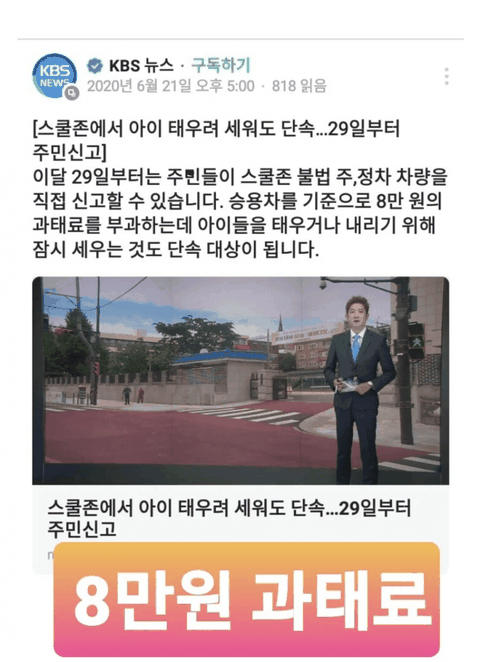 학교 앞에 아이 내려주거나 태우려고 잠깐 세우는것도 못하게 한다네요......