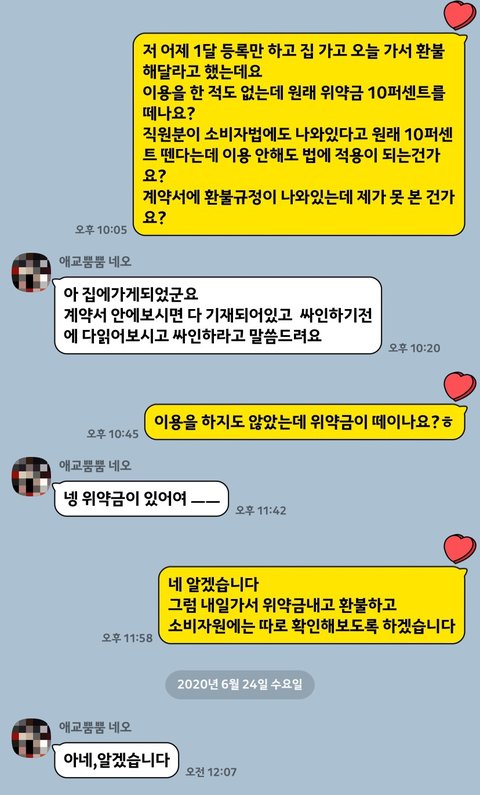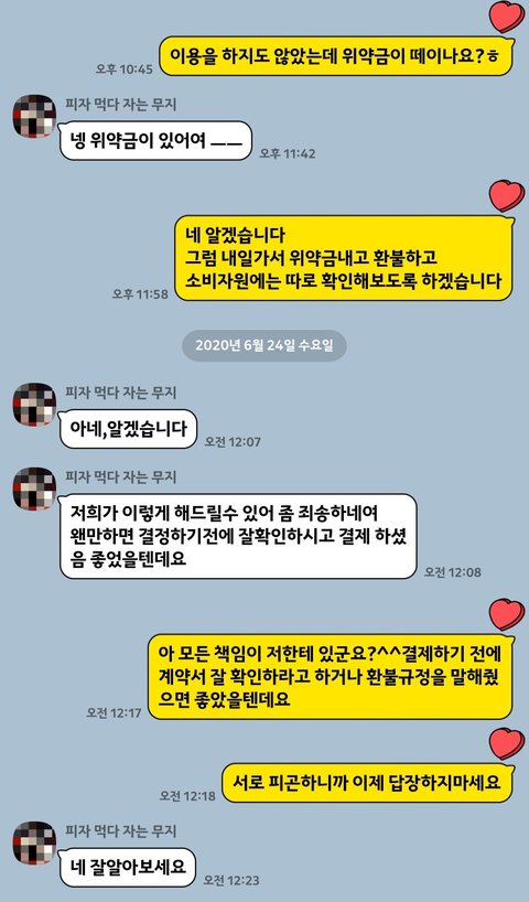 처음엔 위약금 때매 기분만 나쁜 정도였는데 대응하는 것 보고 진짜 화병날 것 같아요ㅎ