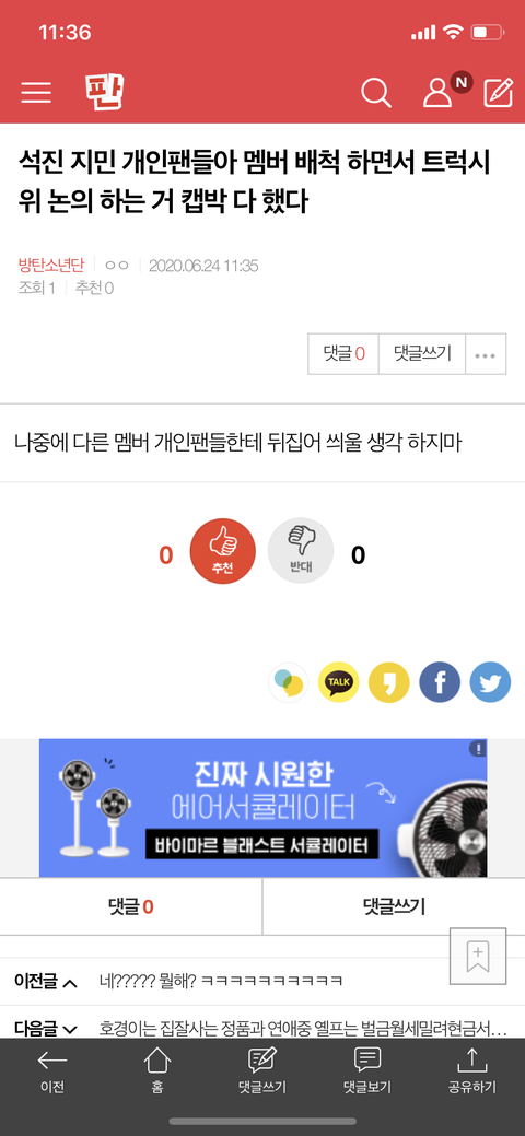 계속 같은 글이고 같은 애라 이제 조방 안함 알아서 스루가능하지?