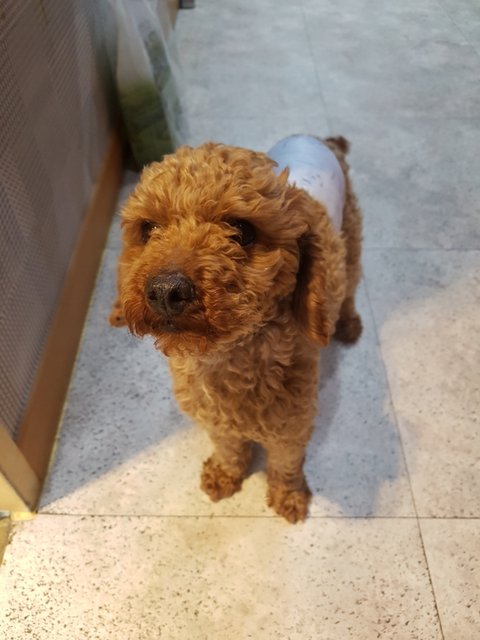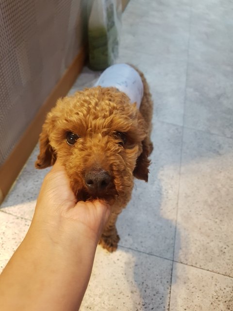 같이 있던아이 뒤를 힘겹게 따라가고 있던 푸들아이