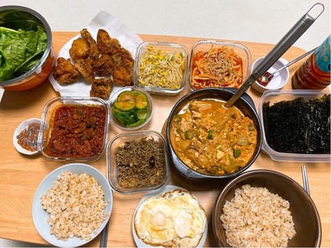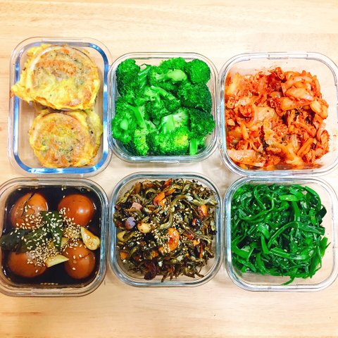 계란장조림, 멸치볶음, 미나리나물, 참치김치볶음, 브로콜리, 오징어순대