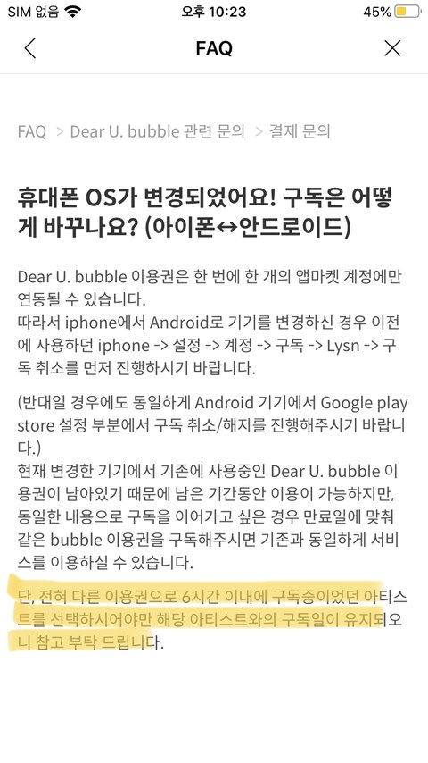 이번에 갤럭시에서 아이폰으로 바꿨는데 안드로이드에서 했던 버블 끊고 날짜 잘 맞춰서 다시 같은멤 결제하면 구독일 안끊어지지? ㅠㅠ 저 마지막줄이 이해가 안가..