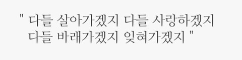 알아주었으면 좋겠다 내가 평범하다 생각한 삶도 누군가에겐 정말 특별할 수도 있다는 걸 알려준 윤기한테도 응원을 보내고 싶고