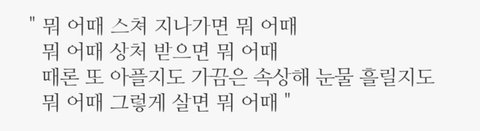 음 이 구절은 그냥 딱 가사만 읽어봐도 위로가 된달까
