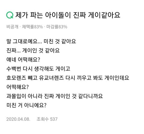 내가 딱 사진 속 심정임ㅜㅜㅜㅜ 나 알페스 안하는데도 긴가민가 함... 알괘스 하는 사람들은 좋겠지만 난 별로라고ㅜㅜㅜ 진짜 걔네 끼리 사귄다면 당연히 응원하겠지만..... 그래도 비게퍼 맞겠지...?